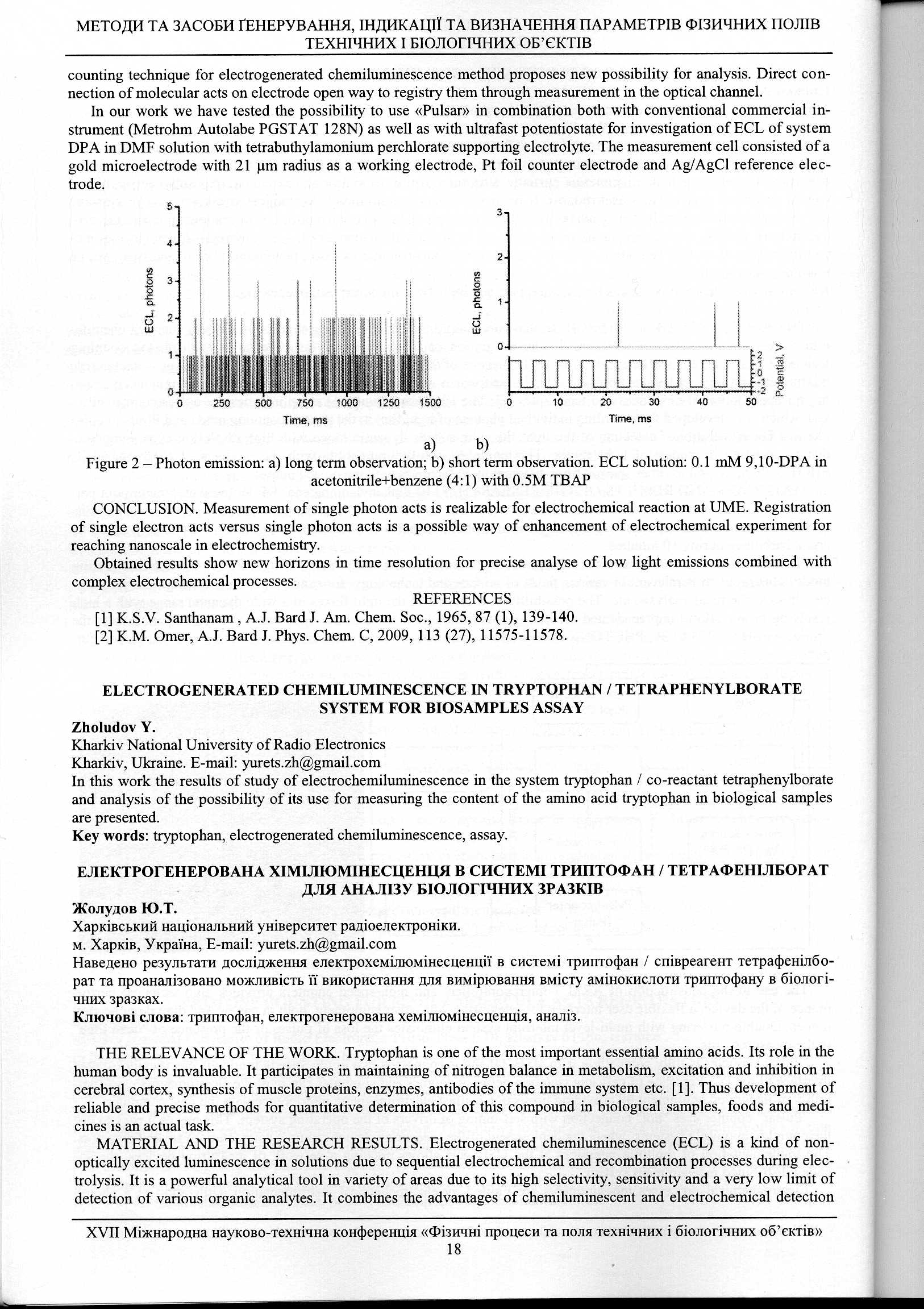 Snizhko D. Photone counting for single molecula acts registration / D. Snizhko // XVII Міжнародна науково-технічна конференція «Фізичні процеси та поля технічних і біологічних об’єктів»: матеріали конференції. – Кременчук: КрНУ, 2018. –С.16-18