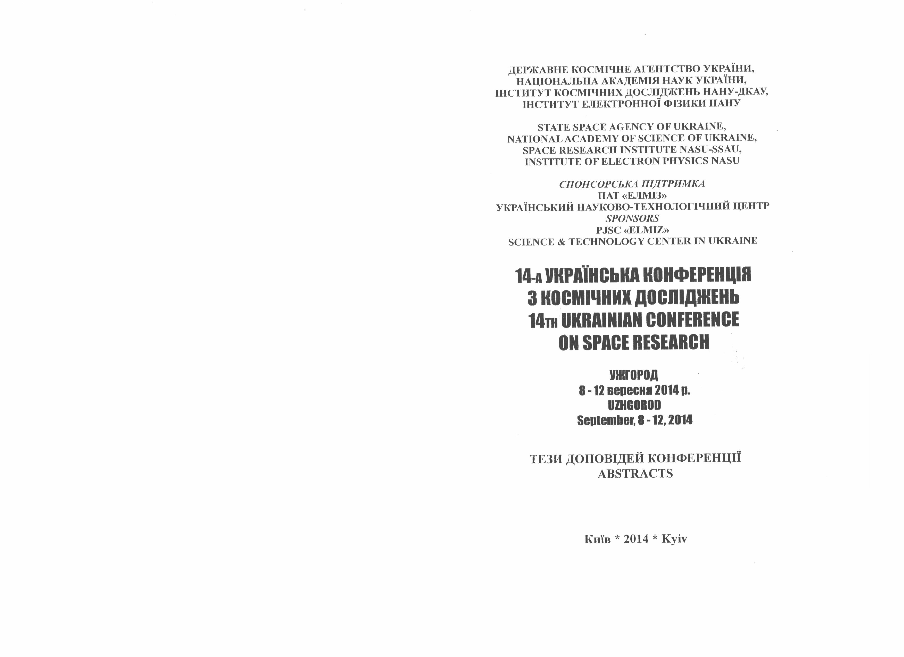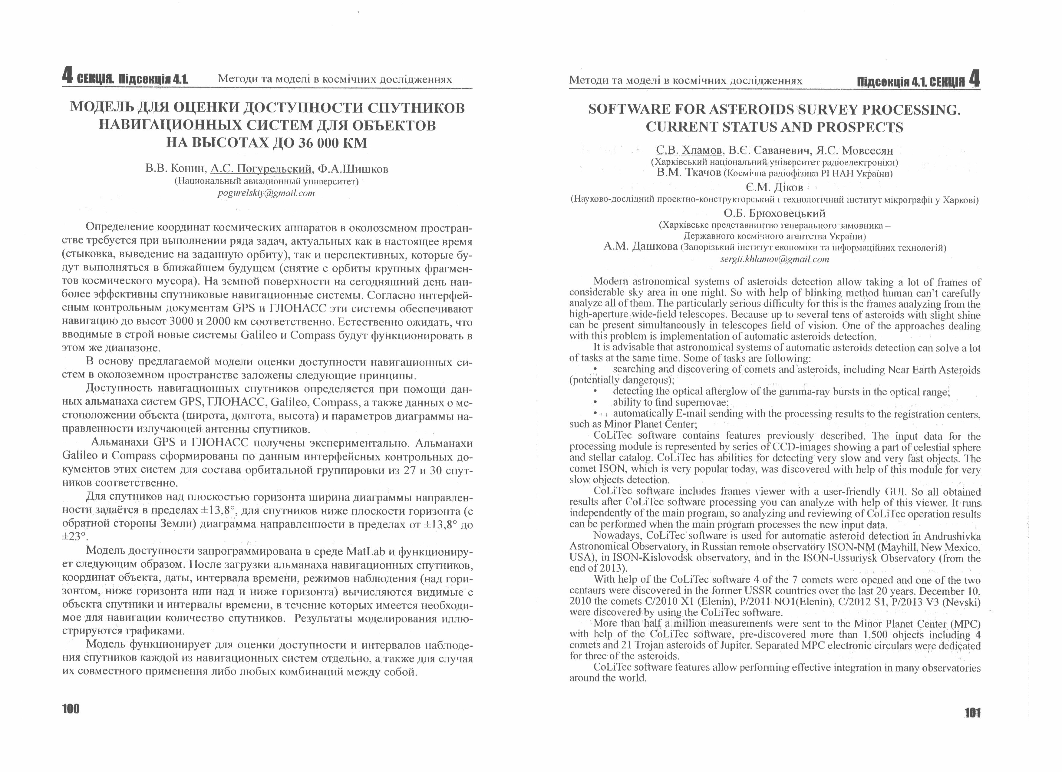 Хламов С. В. Software for asteroids survey processing. Current status and prospects / С. В. Хламов, В. Є. Саваневич, Я. С. Мовсесян, В. М. Ткачов, Є. М. Діков, О. Б. Брюховецький, А. М. Дашкова // "14-та українська конференція з космічних досліджень", 8–12 вересня 2014 р.: сб. матер. конф. – Ужгород, 2014. – С. 119.
