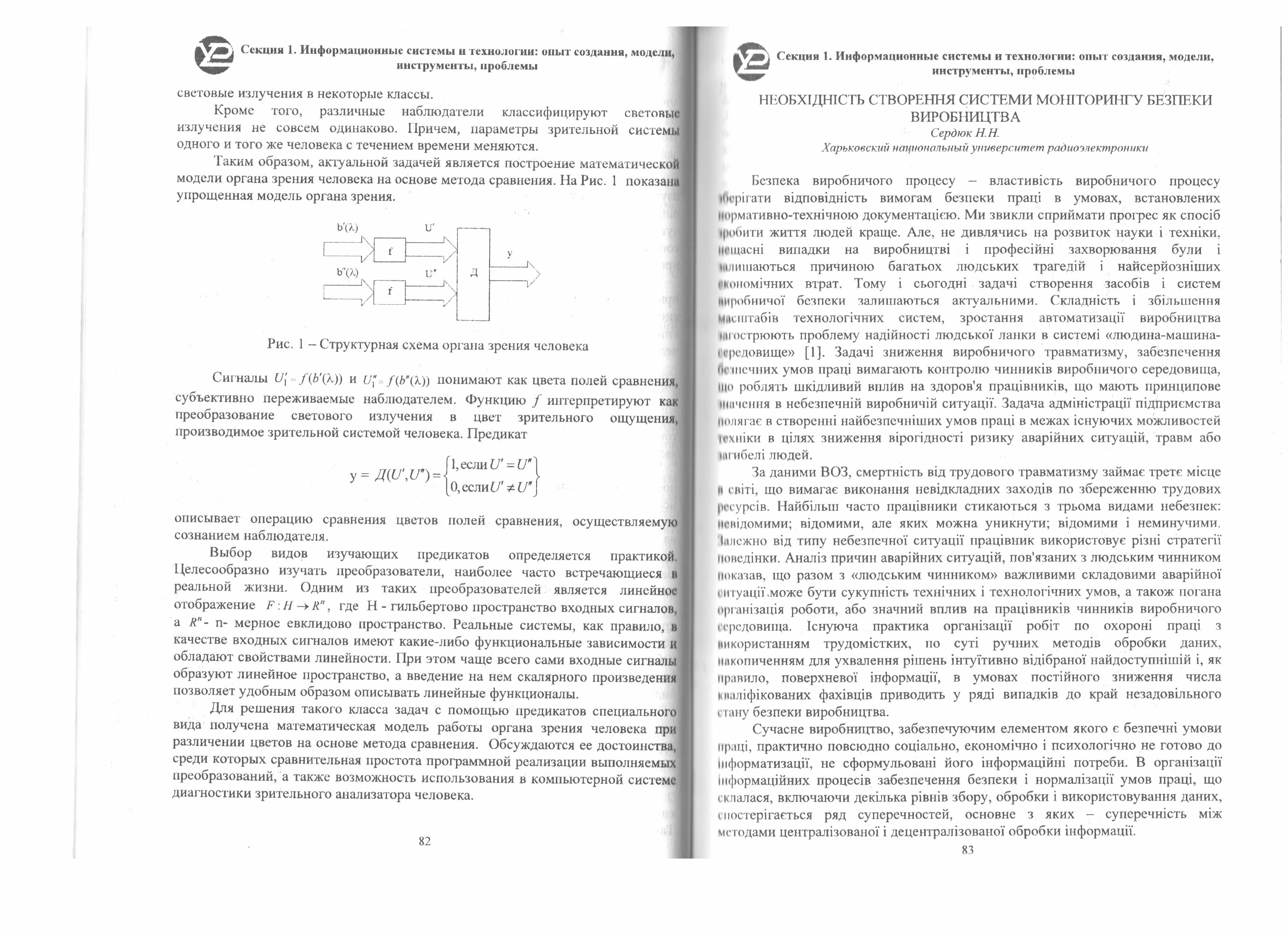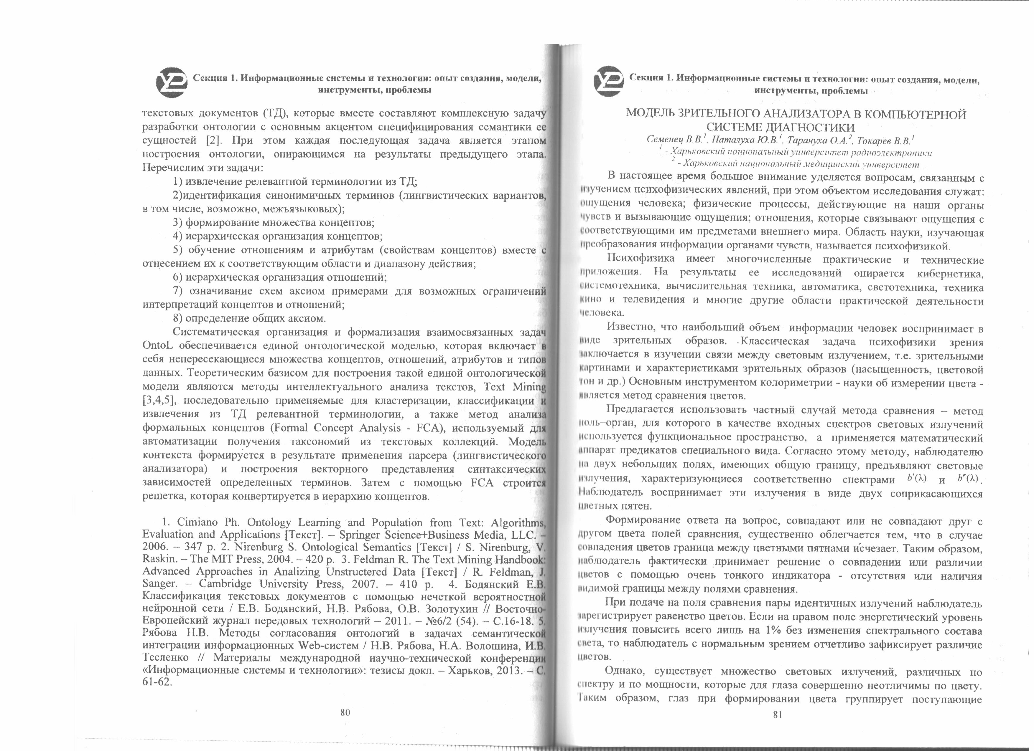 Модель зрительного анализатора в компьютерной системе диагностики / В. В. Токарев, В. В Семенец, Ю. В. Наталуха, О. А. Тарануха // Информационные системы и технологии: материалы III - межд. науч. - техн. конф., 15-21 сентября 2014 г. – Харьков, 2014. – С.81-82.